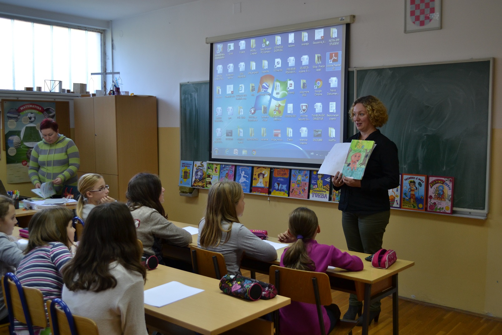 Da bi učenici naučili kako izraditi svoju prvu vlastitu slikovnicu, u goste su nam stigle članice udruge „Kalibra“ - teta Iva i Nevena. KAlibra je udruga za promicanje kulture čitanja, a cilj joj je stvoriti novi naraštaj mladih čitatelja i kreativnih stvaratelja. Naučile su učenike od 2.- 8. razreda kako napisati i ilustrirati svoju vlastitu slikovnicu. Učenici su započeli s procesom izrade vlastitih slikovnica, a mogu ih dovršiti i poslati na nagradni natječaj Moja prva knjiga.