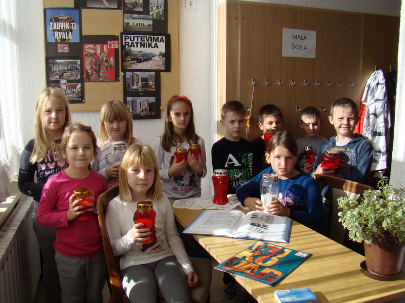 Počast poginulima u Vukovaru odana je i paljenjem svijeća uzduž prilazu školi te na školskim stepenicama.