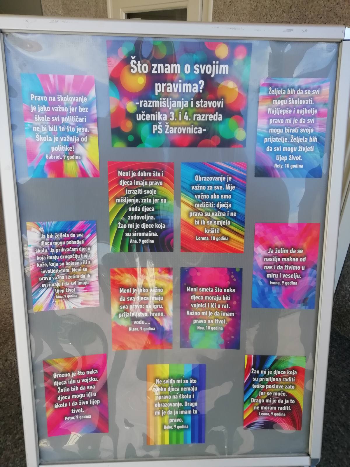 Učenici naše područne škole razgovarali su o dječjim pravima i njihovoj primjeni. Učenici su iznijeli svoje stavove i razmišljanja te smo karticama uredili, povodom Dječjeg tjedan u Lepoglavi, i izložbeno – oglasni prostor na ulazu u Dom kulture.