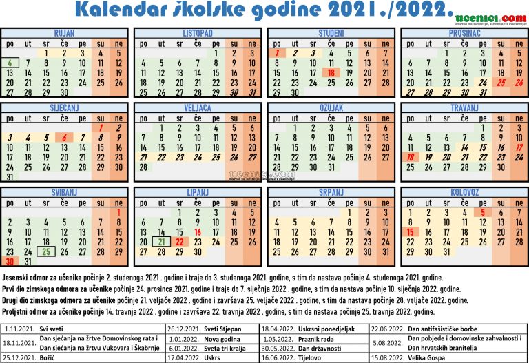 Kalendar rada škole za 2021./22. trebao bi izgledati ovako: