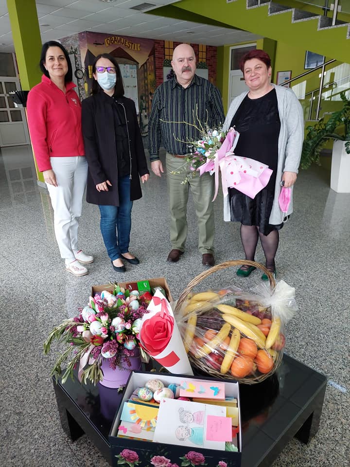 U ovo pandemijsko vrijeme kad su sve posjete domovima bile zabranjene i/ili vrlo rijetke, željeli smo svim štićenicima poslati poruku koja će im, ako ništa drugo, uljepšati dan! U izradi čestitaka i aranžiranju angažirali su svi učenici i djelatnici škole.