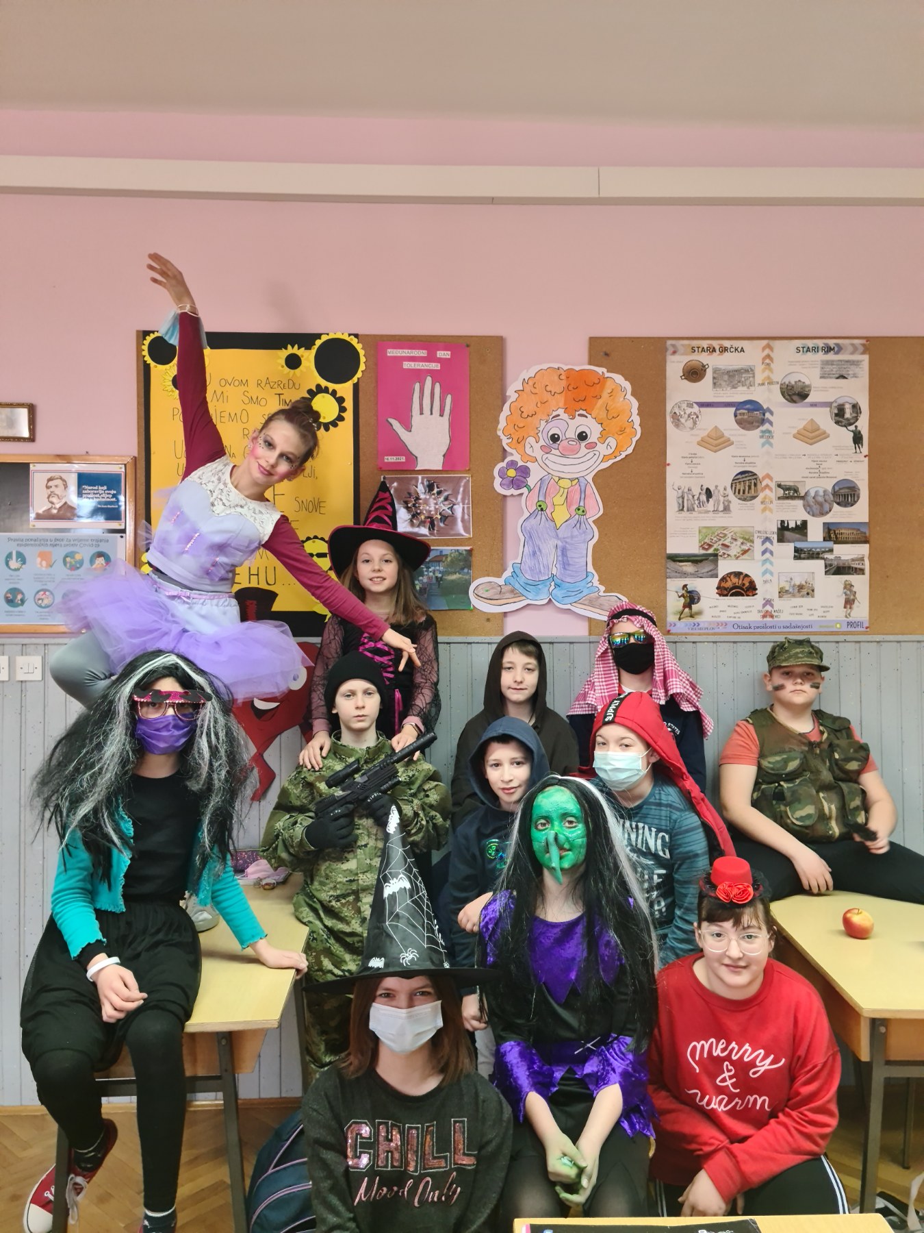 Učenici visih razreda također su se maskirali. Bilo je tu mišića, leptira, batmana, princeza, policije, balerina i kapetana.Maskirani likovi rastrčali su se školom, a veselju nije bilo kraja.