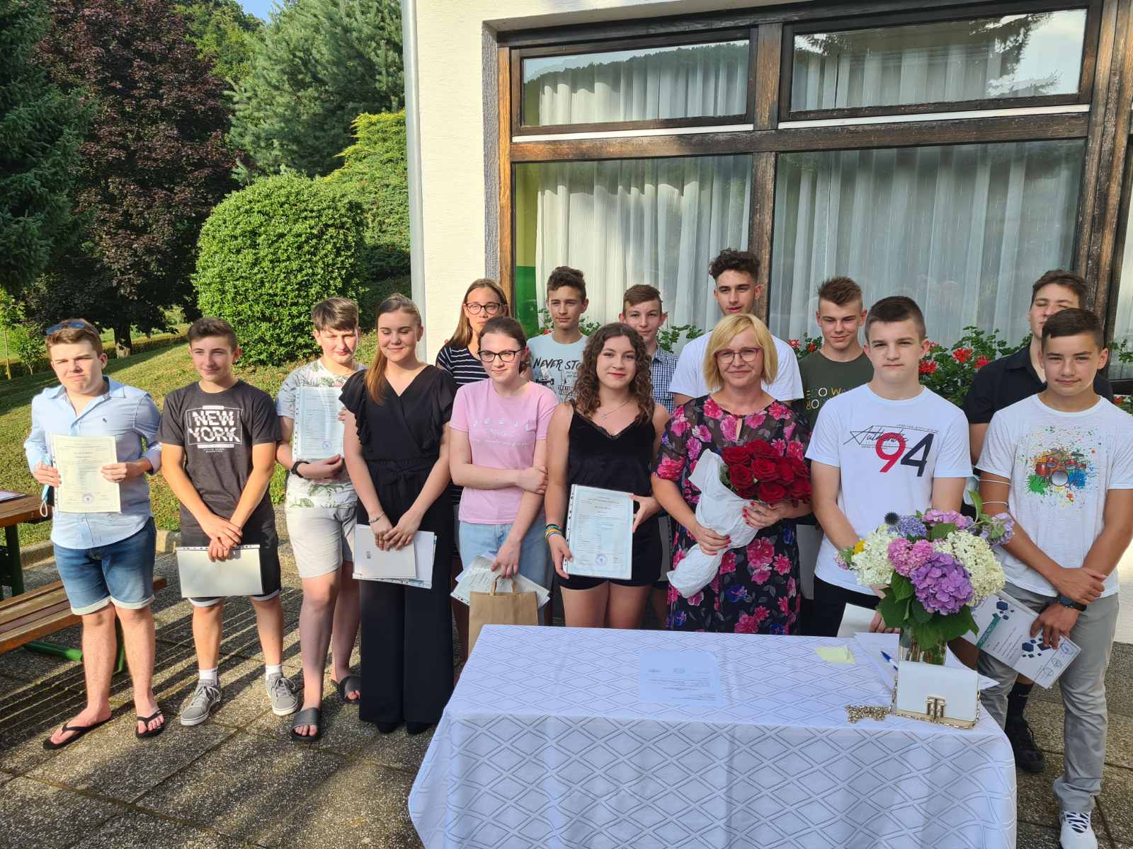 0 02 05 80260039c0b71a5ba8f4e59b68280eb39b59458cd35c5ddcb006b7d9f933d7af ef8c51c3b606ef92Svečanom podjelom zasluženih svjedodžbi i pohvalnica naši su se osmaši oprostili od svog osmogodišnjeg školovanja u našoj školi. Od učenika se prigodnim govorom oprostila njihova razrednica Emina Husnjak koji je istaknula  da su bili  dobra generacija učenika.