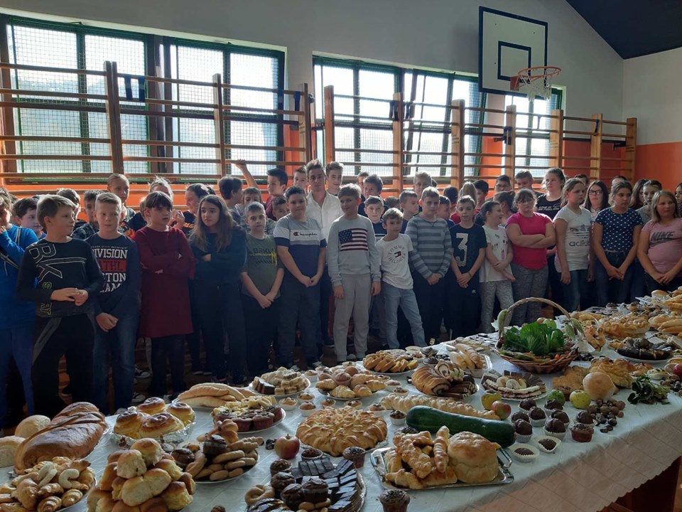 Tako smo i mi, 18. listopada, u našoj matičnoj i područnoj školi postavili izložbu plodova zemlje užeg zavičaja, kruha i krušnih proizvoda, različitog sjemenja. Nadopunili smo ih izložbom učeničkih radova (likovne, literarne i dr.), a pripremili smo i malu svečanost te blagoslov kruha i proizvoda od brašna koje su pripremile vrijedne ruke roditelja naših učenika, baka, teta...