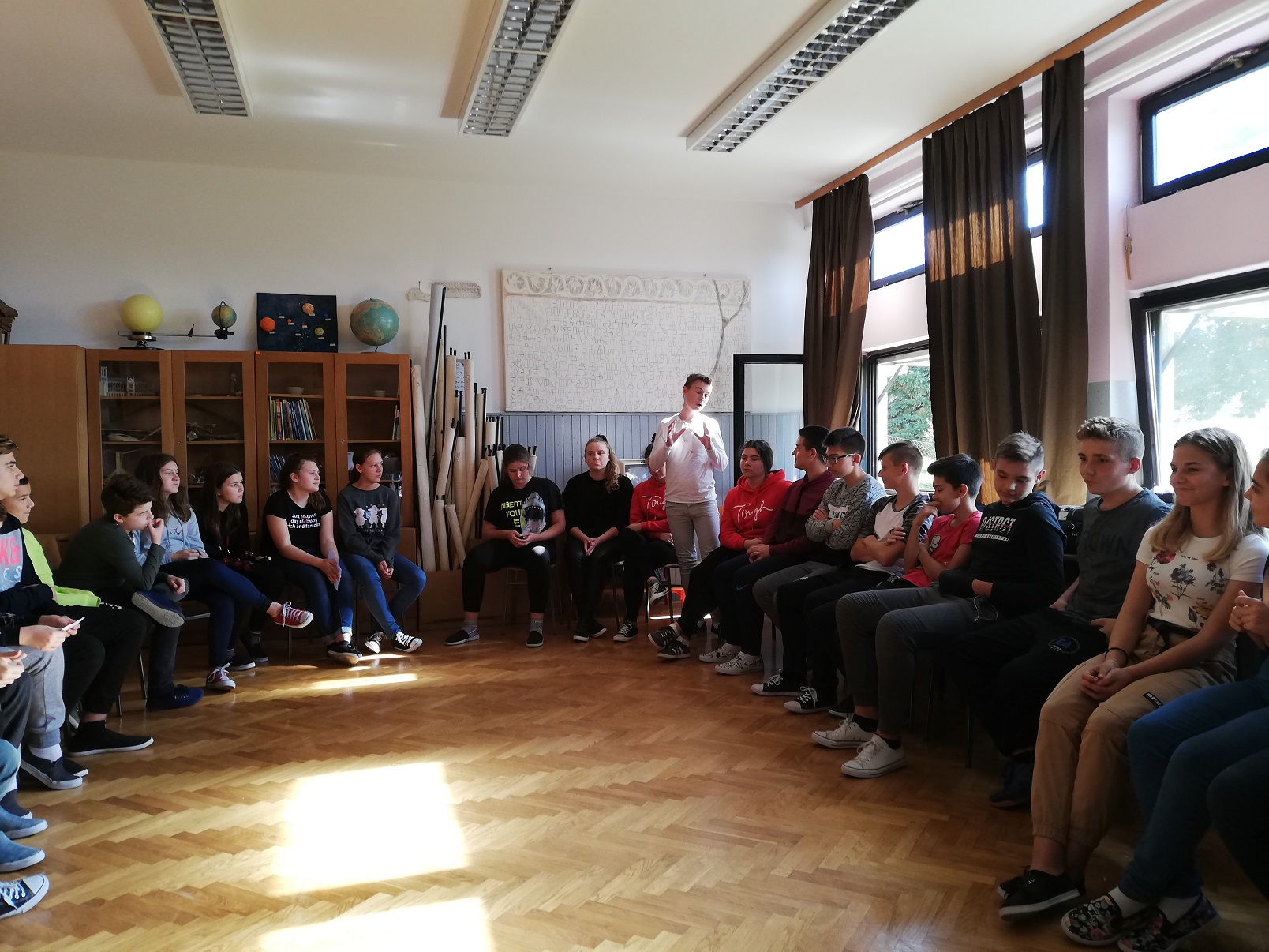 Debatu u našoj školi  su pripremili učenici sedmog i osmog razreda uz pomoć profesorice Nikoline Županić, Emine Husnjak i Mirjane Sambolec, a odvijala se kao planirana aktivnost u sklopu obilježavnja Dječjeg tjedna.