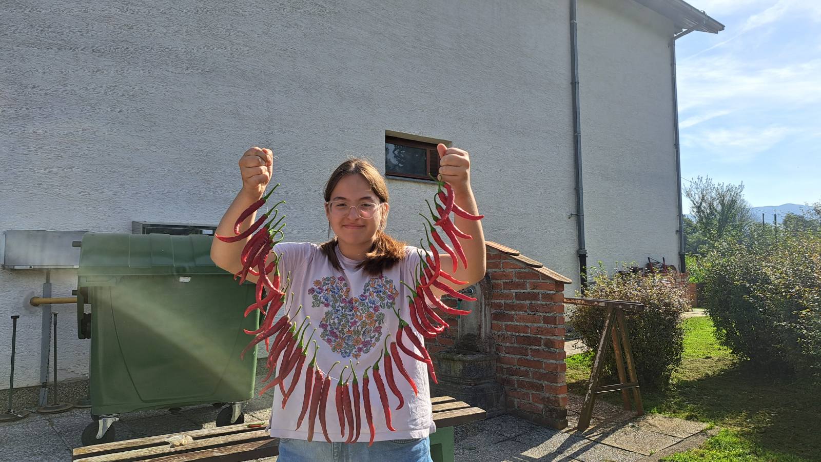 Ovo bablje ljeto baš odgovara našem vrtu. Biljke i dalje bujaju, a ove su nam godine iznimno rodile feferonke. Nisu jako ljute, ubrali smo ih, a našim učenicama smo pokazali kako su nekad sušile, mljele i "proizvodile" crvenu papriku naše bake.