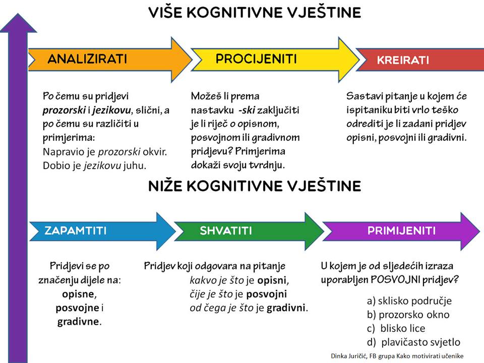 Nivoi napredovanja u učenju i rastu u težini od najjednostavnijih i najkonkretnijih do sve složenijih i apstraktnijih (učenik čija je izvedba na višoj razini znanja demonstrira korištenje složenijih misaonih operacija - Bloomova taksonomija.
