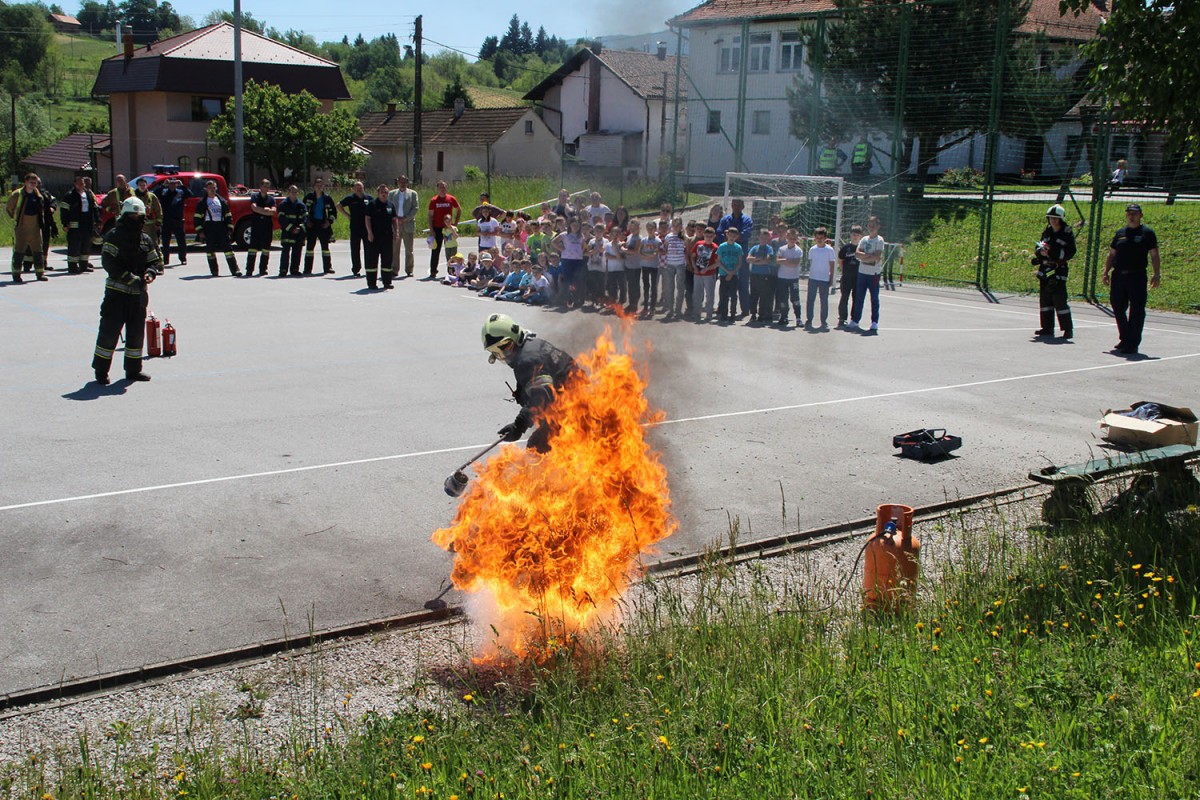 Vatrogasci su potom učenicima i djelatnicima škole zorno, simulirajući stvarne uvjete, prikazali najčešće uzroke požara u kućanstvima i načine gašenja. Vatru su aparatima za gašenje požara gasili i sami učenici te djelatnici škole koji su tako naučili koristiti aparate u slučaju nastanka požara.