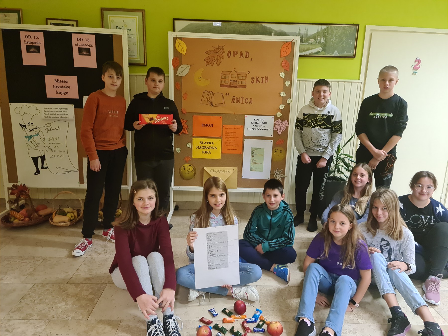 Mjesec školskih knjižnica završio je proglašenjem pobjednika slatke emotikon nagradne igre koju su igrali svi učenici naše škole, a zaintegrirala je i učitelje/ice. Uz pomoć emotikana u nizu trebalo je pogoditi lektirne naslove koji se nalaze u knjižnici te svoj odgovor ubaciti u kuvertu.