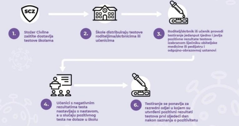 U slučaju pozitivnog testa učenik ne dolazi u školu, nego se javlja liječniku i školi, a testiranje se ponavlja za cijeli razredni odjel s COVID pozitivnim učenikom.
