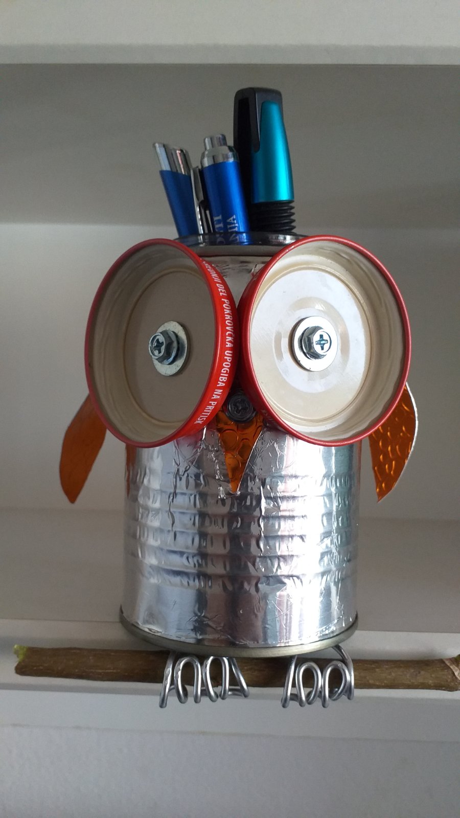 Slika: sovica mudrica od recikliranog materijala pri ruci - učenici 5. a razreda